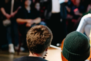 Die Kinder sitzen im nicht bestuhlten vorderen Saalbereich, um bestmöglich in die Veranstaltungen eingebunden zu werden. Im hinteren Saalbereich stehen Sitzplätze zur Verfügung.