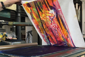 Der Kurs vermittelt Grundlagen bzw. weiterführende Kenntnisse im Hochdruck (Holzschnitt und Linolschnitt, Materialdruck) und ist für alle Interessenten geeignet. Gedruckt wird in individueller Abstimmung an der Presse und im Handabzug – drei Kniehebelpressen und eine kombinierte Hoch-/Tiefdruckpresse stehen zur Verfügung.